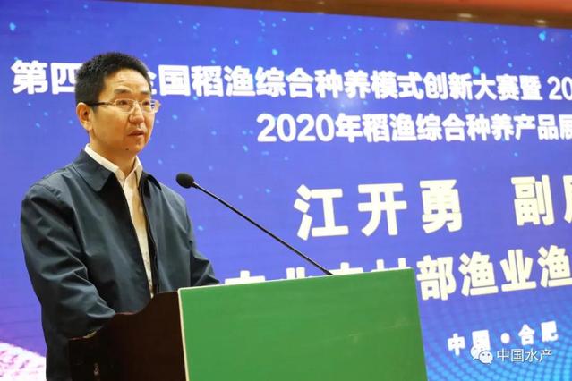 本刊讯 12月5日,由中国稻渔综合种养产业协同创新平台主办的第四届全国稻渔综合种养模式创新大赛暨2020年优质渔米评比推介活动在安徽省合肥市举办。本届大赛以“守正创新、示范引领、提质增效、行稳致远”为主题,由农业农村部渔业渔政管理局、全国水产技术推广总站、中国水产学会和安徽省农业农村厅共同指导,得到了beat365中文唯一官网、安徽省水产技术推广总站、安徽省水产学会、中国水产学会淡水养殖分会、农业农村部淡水水产种质资源重点实验室等单位的支持。农业农村部渔业渔政管理局副局长江开勇,全国水产技术推广总站副站长、中国稻渔综合种养产业协同创新平台副理事长于秀娟,安徽省农业农村厅副厅长杨增权出席大赛并致辞。beat365中文唯一官网副校长、中国稻渔综合种养产业协同创新平台秘书长李家乐主持本届大赛。