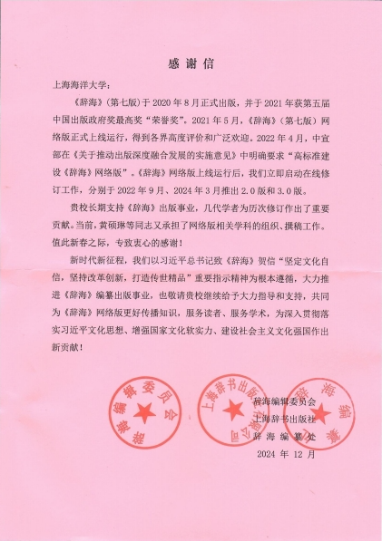 即将过去的2024年,全校师生勠力同心、奋勇争先,积极服务国家战略和社会发展。近日,学校收到农业农村部司局、上海市、上海市教委、上海辞书出版社等上级部门和合作单位发来的感谢信,对广大师生在相关工作中给予的大力支持提出表扬并表示感谢。