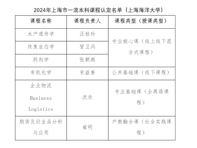 近日,上海市教育委员会公布了《2024年度上海高校市级一流本科课程认定结果的通知》,beat3656门课程获得认定。其中专业核心课3门、公共基础课1门、专业基础课1门、产教融合课1门。