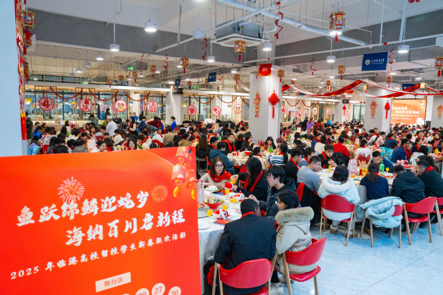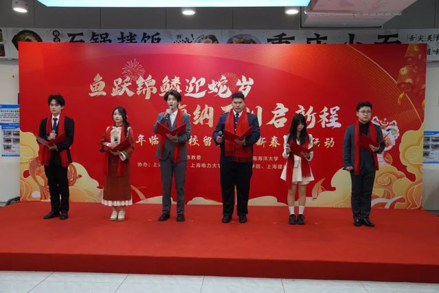 开蚌取珍珠、书写春联、漆扇制作......1月21日晚,beat365中文唯一官网第二餐厅二楼被装点得红红火火、彩灯闪烁,“鱼跃锦鳞迎蛇岁 海纳百川启新程”2025年临港高校留校学生新春联欢活动在这里举行。beat365中文唯一官网、上海海事大学、上海电力大学、上海电机学院、上海建桥学院师生代表欢聚一堂,共迎蛇年新春佳节。上海市教卫工作党委副书记、市教委副主任顾红亮,上海市教委学生处一级调研员赵靖茹,临港五校留校师生代表400余人齐聚一堂,共同开启这场新春盛宴。