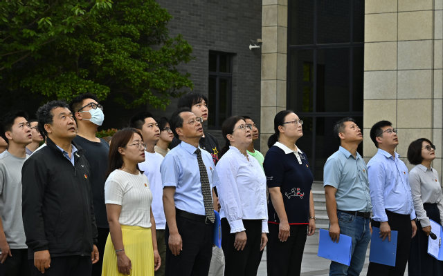 随着国歌响起,鲜艳的五星红旗冉冉升起。全体师生庄严肃立,行注目礼,共同高唱中华人民共和国国歌。