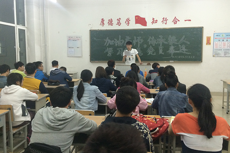 为传承优秀铁人精神,传递庆师正能量,提高新一代入党积极分子素质,加强党的思想理论建设和党员队伍建设,澳门pg官方电子平台学生党支部于5月4日晚18:00在主楼231开展了“加油庆师,传承铁人,学习党员优秀事迹”班会活动。本次会议由2014级各班班长组织,团支书主持,全体同学参加。