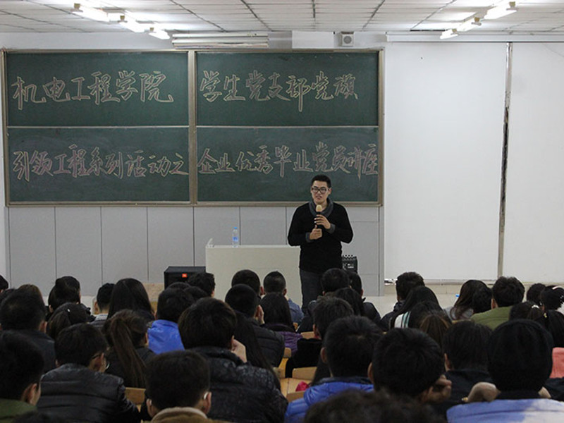 史泰隆,2010级优秀毕业生,现为第五采油厂第一油矿九区二队的采油工,毕业重回母校,他表示有很多感悟想与同学们分享。首先他从“如何读大学”、“如何过大学”、“如何做优秀党员”、“如何成为企业所需要的人才”等方面向学弟学妹们提出了:“大学生活与高中生活有何不同?”等问题,随后通过自身在大学的切实经历,为同学们进行耐心细致的分析。一方面,他通过举例,讲述自己的大学学习生活及学生会工作内容与方法,鼓励同学们多多参与活动,提高自身综合素质。他指出,想要成为一名优秀党员,应时刻对自身的行为及素养有一定的要求,主动服务于同学,愿意干活,多干活,干细活。他也通过自己的成功经历向同学们传授了很多宝贵的学习经验,例如:他曾用2个半月埋头苦学,最终通过大学英语四级考试,他的经历告诉同学们:只要在工作学习中肯付出,肯吃苦,就会有回报。另一方面,他向同学们介绍了目前企业的真实工作环境,其工作量及企业单位对员工的要求,及用人单位对毕业生基本技能的需求方向。同学们纷纷表示,真正领悟到了“机遇是留给有准备的人的”。毕业后想要找个好工作,不只是想想而已,要真正的付出行动。抓住机遇的同时也要懂得取舍,学习生活中不要急功近利,掌握好基础的专业知识。史泰隆的一番肺腑之言使同学们对自身综合能力的提高有了进一步的思考及要求。