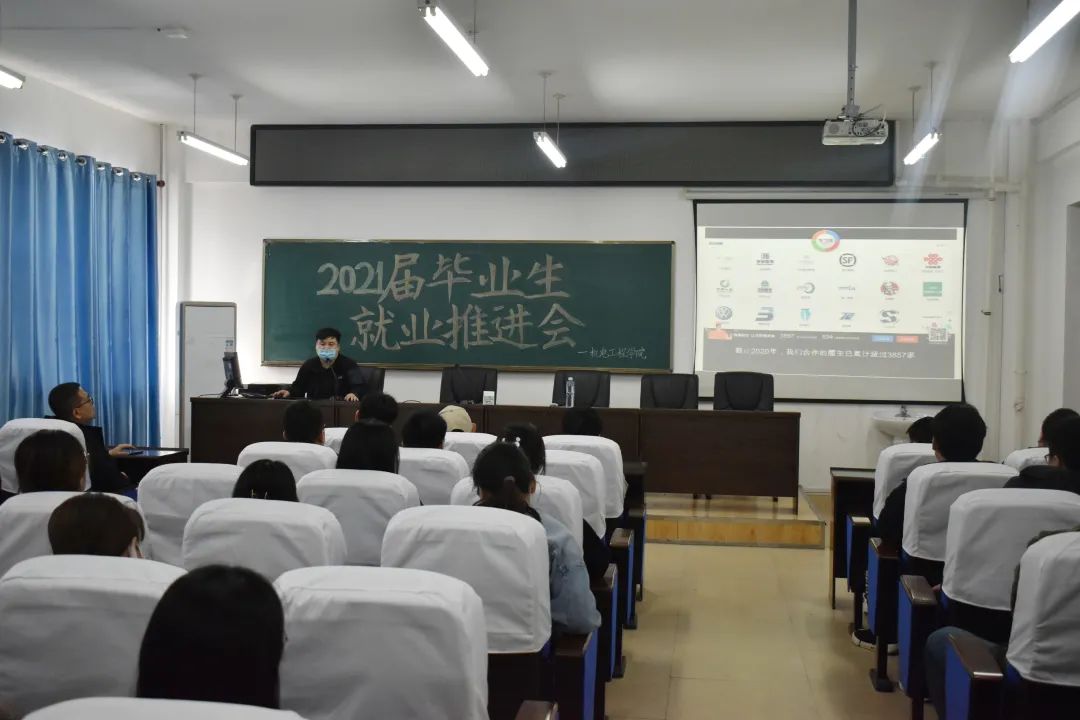为进一步推动毕业生就业指导工作,帮助毕业生了解就业形势,提升就业素质,4月1日上午10:00,澳门pg于机电综合楼306举办毕业生就业推进会,澳门pg党总支副书记邓雨巍老师,17级辅导员孙健老师和吉利公司侯老师出席本次会议,2021届毕业生代表参加了本次会议。