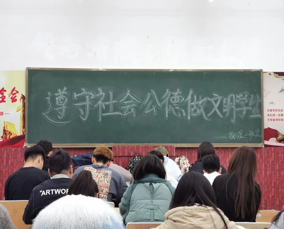 在班会上,班长为大家讲解了有关社会公德的内涵,班长讲到:古人将其归结为忠、孝、仁、义、礼、智、信等。这种公德在中华几千年的文明进程中不断延续发展,始终是社会发展的基本伦理。它不曾被历史长河的滚滚巨浪所淹灭,正证明了社会公德是维系社会和谐的基本保障。