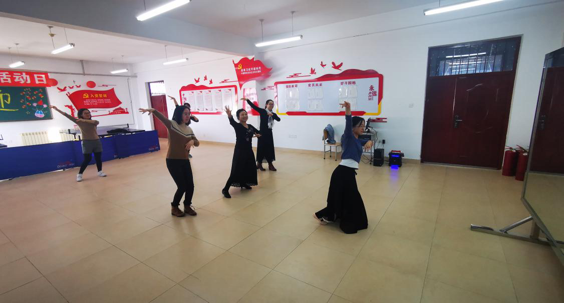 舞蹈培训过程中,李秀明老师组织大家学习了舞蹈基本知识,诠释了所跳舞蹈《万疆》中的爱国情感,用易懂的语言和动作引领教师们沉浸在舞蹈的氛围。教职工们在李老师的指导下用头、肩、臂等各部位的动作,将内心感受表达了出来。通过李秀明老师的讲解和介绍,大家更近一步的懂得了舞蹈的表现力和感染力,老师们也学会了通过多种形式的舞蹈动作表现舞曲的内在韵味。