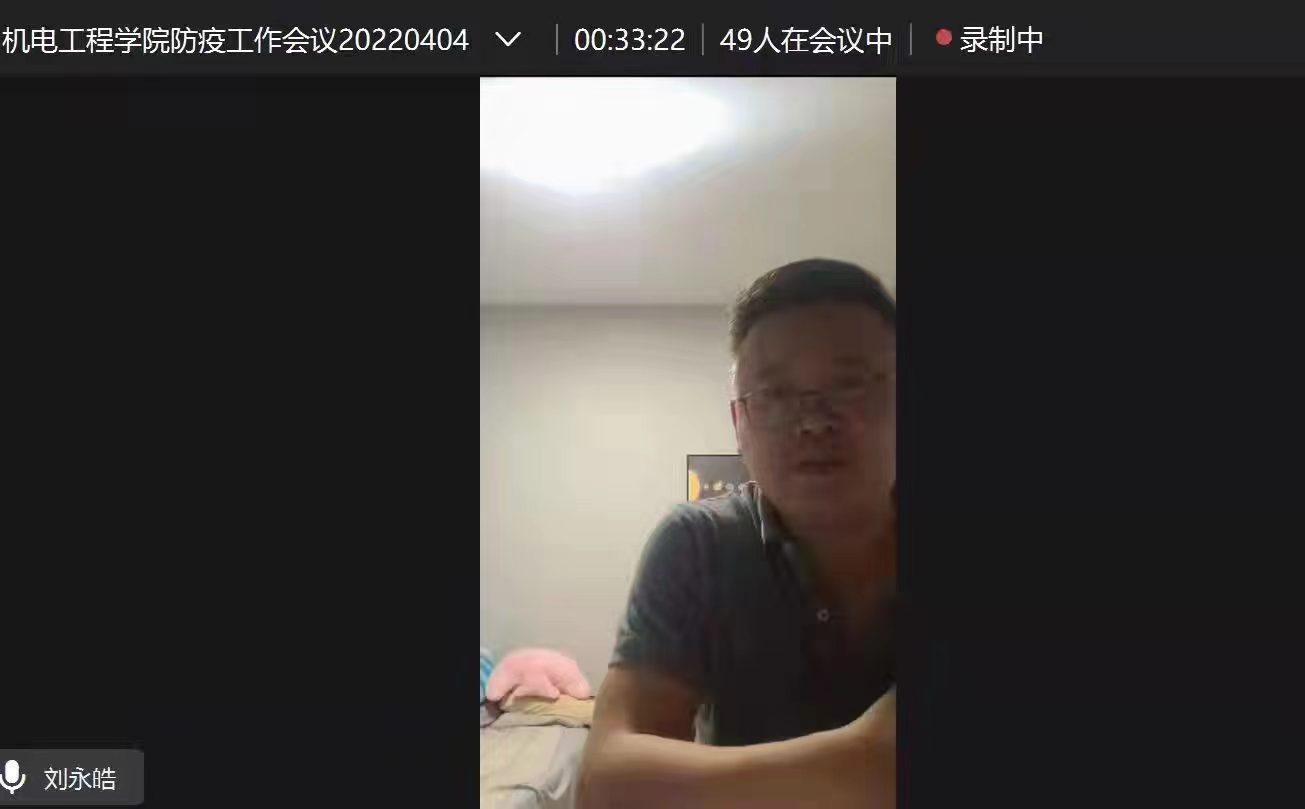 2022年4月4日晚19:00,澳门pg官方电子平台召开疫情防控工作会议,落实学校要求和部署,强调纪律要求。学院全体教师通过钉钉参会。