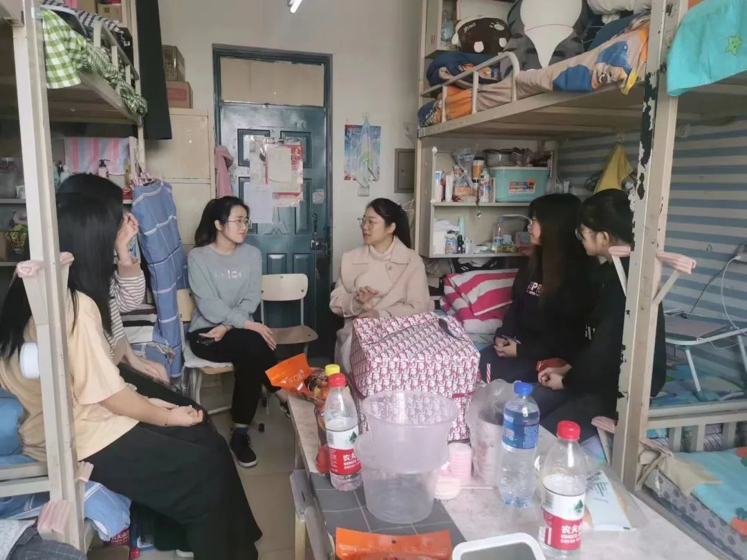 在走访过程中,邓老师认真地检查了各个寝室的内务、卫生及安全情况,并对卫生情况干净整洁的宿舍提出了表扬。同时也根据自己的生活经验给予了同学们一些生活上的建议。在愉快的交流中,邓老师也传达出了学院对于疫情期间的各项规章制度和基本要求,提示大家疫情期间要多通风,注意宿舍卫生问题。亲切关怀交流的同时还拉进了师生之间的关系。