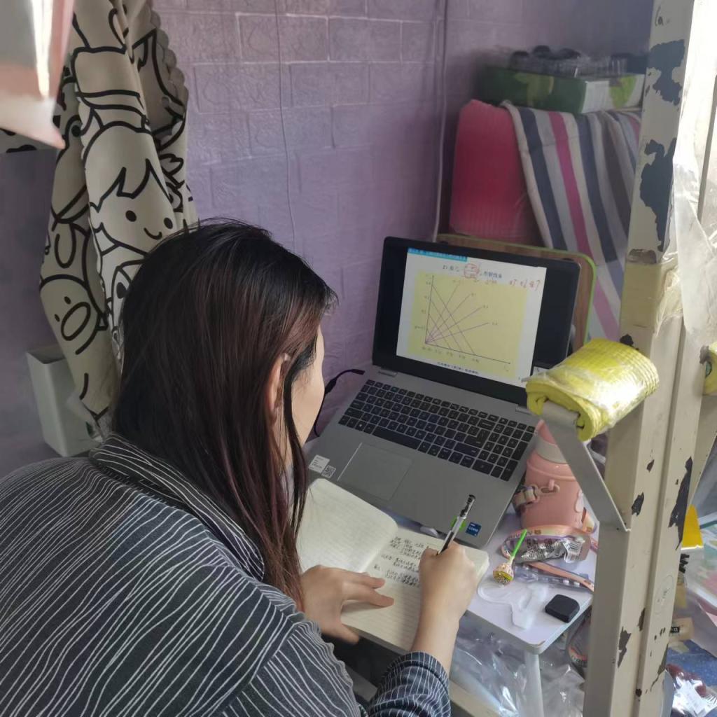 王洁(2020级汽服二班)在直播会议时,老师通过书写的形式,细致、全面地讲解课程内容,备课充分,逻辑清晰,思路明确,语言流畅。采用连麦的方式答疑和互动,激发学生的学习兴趣,课后有练习题帮助同学们温习课程同时帮助同学们回答习题问题,大大提升了线上教学的学习效果。