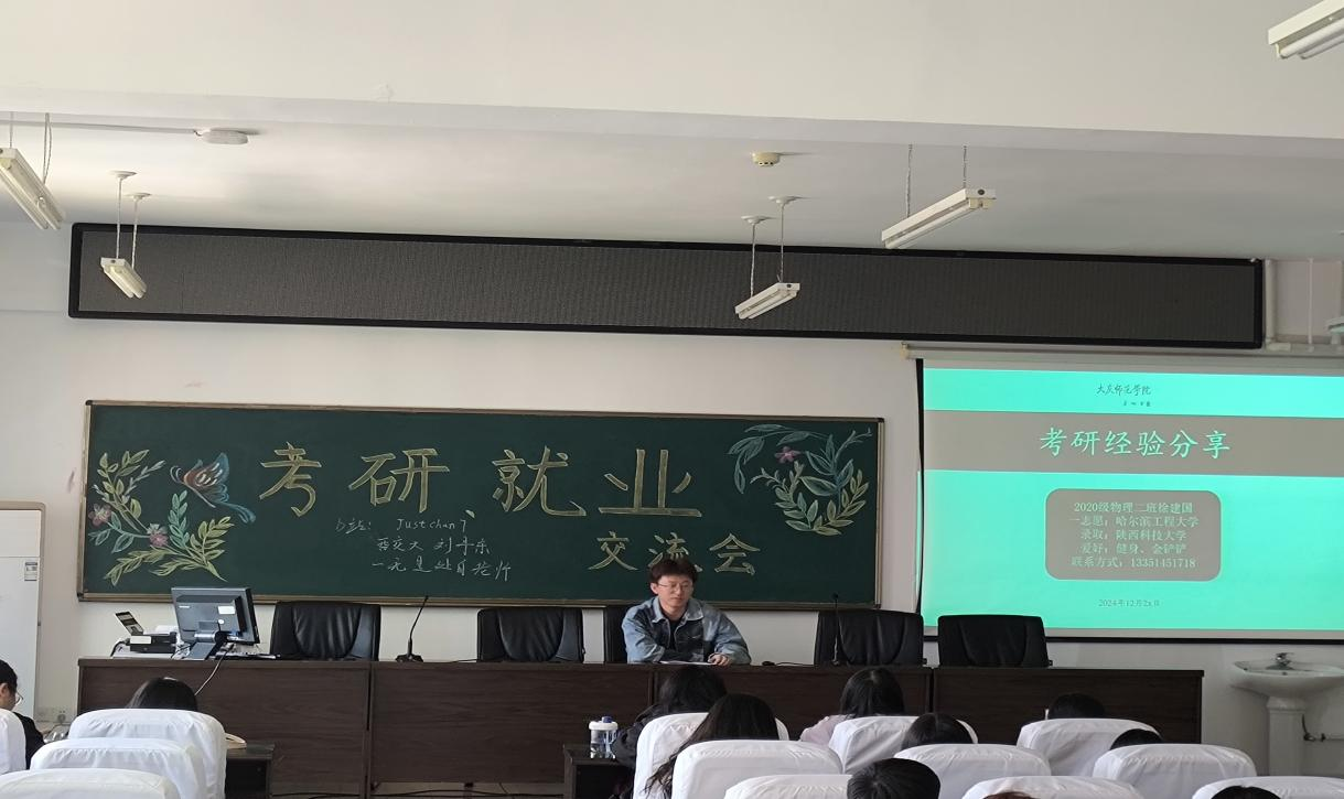 5月28日15:30,澳门pg官方电子平台物理学专业在综合楼306召开“研职共勉、勇于追梦”毕业生交流会,会议由教学副院长王玉玲教授主持,2021级物理学专业全体学生参加。