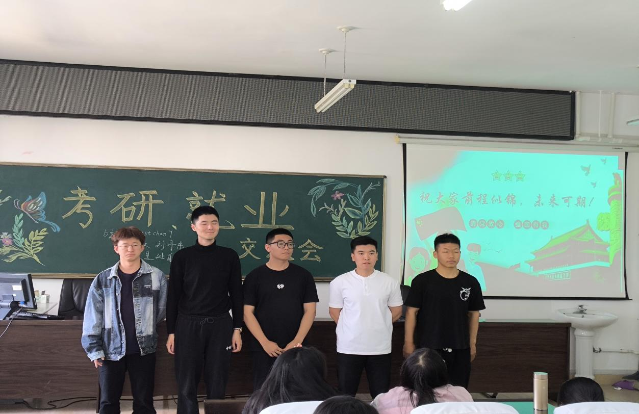 宣真、李进、徐建国分享了自己的考研经验。鼓励同学们合理规划时间、寻找适合自己的学习方法;要不畏艰难、敢于尝试、勇于挑战;坚定目标不动摇,肯付出就一定会见成效。