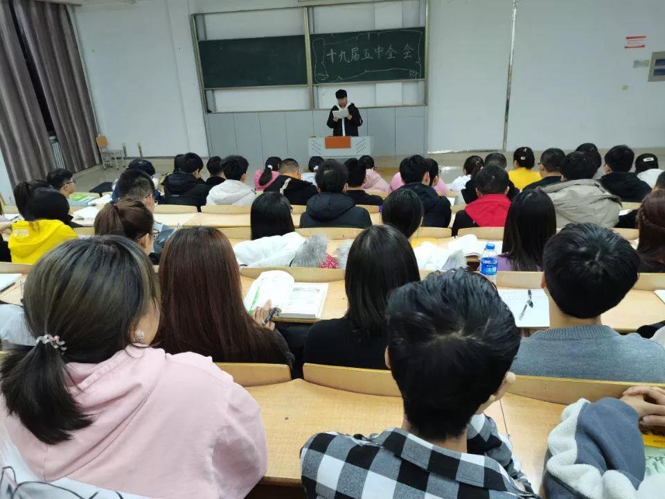 2020年11月25日上午8时,澳门pg官方电子平台团支部组织20级学生于主楼3-3开展学习《党的十九届五中全会精神》的活动总结。