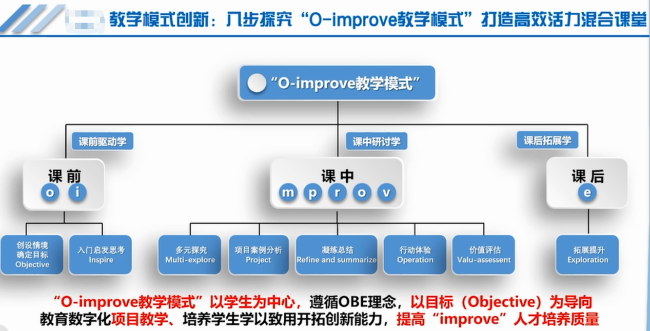 本次比赛得到人事处(教师发展中心)高度重视,经校首席督学王晖教授、省级教学名师冯展吉教授、张晓梅教授精心指导、学院教学委员会多次打磨。大学物理课程组基于实践教学经验,逐渐形成了目标明确、思路清晰、内容具体的信息化教学改革创新思路,提出了适用于高校理工科专业基础课程的“O-improve”混合式教学设计模式,能够为同类课程混合式教学的开展提供参考和借鉴。