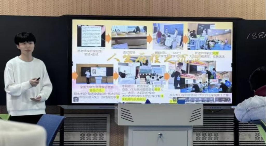 周宇航同学讲述了自己由于对物理专业和物理教师这一职业的热爱来到了澳门pg官方电子平台,来到本专业遇到了受益一生的导师--杨瑞老师,在杨瑞老师的悉心指导和同伴们的共同努力下获得了第十八届iCAN大学生创新创业大赛(黑龙江区)二等奖、澳门pg官方电子平台第十三届“行知杯”教学技能竞赛一等奖等奖项。