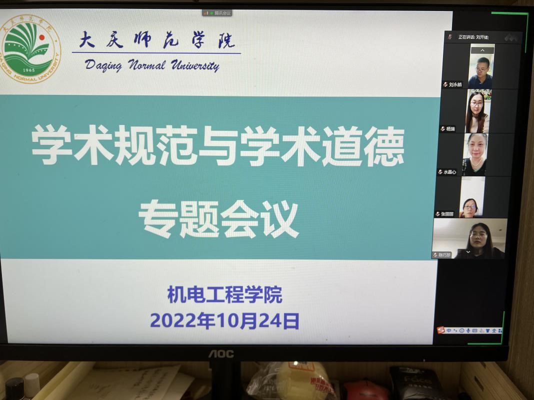 澳门pg官方电子平台为进一步加强师德师风及学术道德建设,由科研副院长刘开绪教授于2022年10月24日通过线上会议方式主持召开了澳门pg官方电子平台关于“学术规范与学术道德”专题会议,全院教师积极参会,认真学习了《高等学校哲学社会科学研究学术规范》、《科研失信行为调查处理规则》和庆师发[2016]24号《澳门pg官方电子平台学术不端行为查处细则》相关文件内容。
