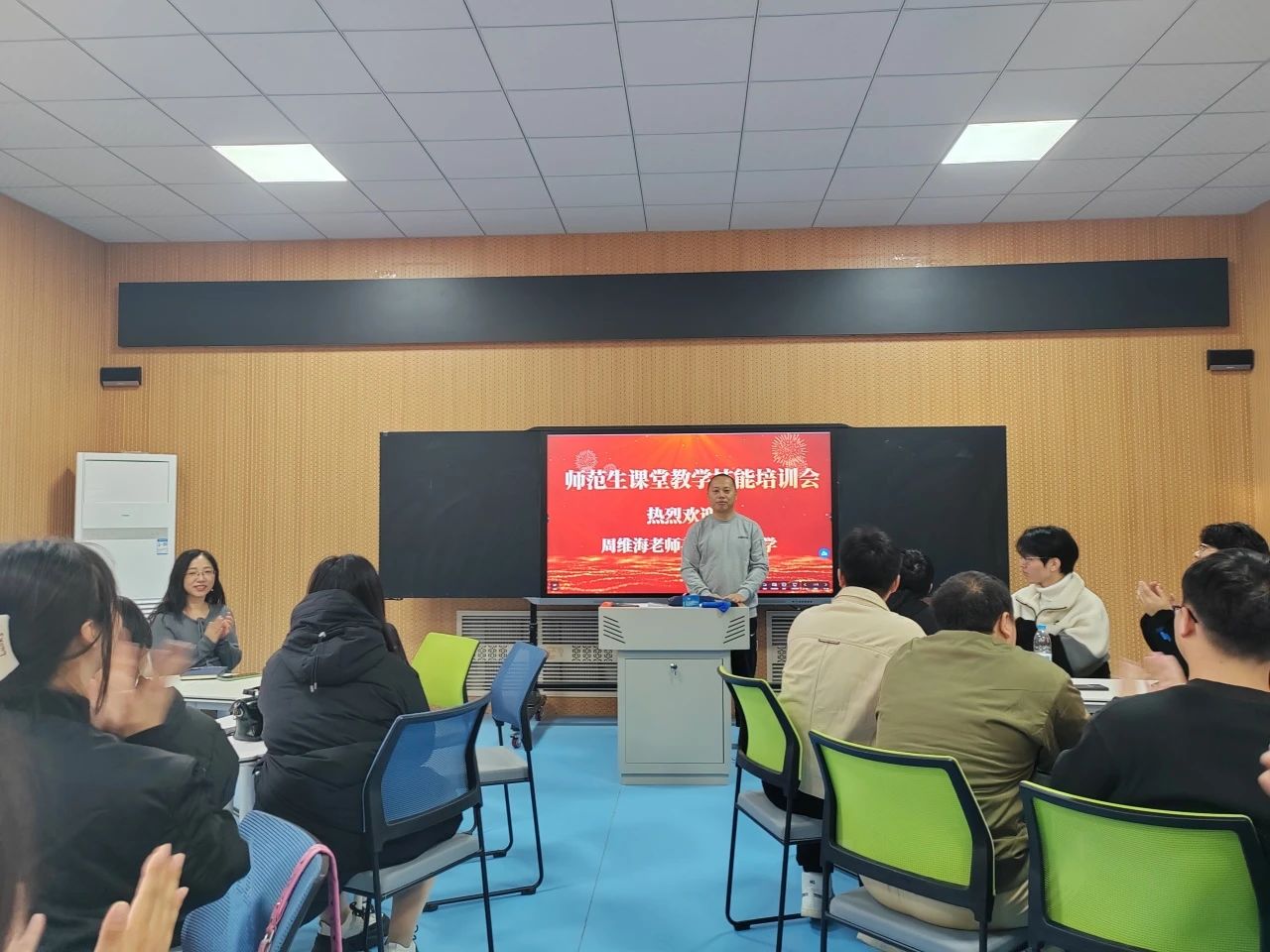 2024年11月15日,澳门pg官方电子平台物理学专业召开师范生课堂教学技能培训会,会议特邀大庆市物理兼职教研员、高中物理学科专家组成员、大庆市名师工作室负责人、大庆第一中学周维海老师对22级物理学师范生进行课堂教学技能培训,物理学专业全体教师参加会议。