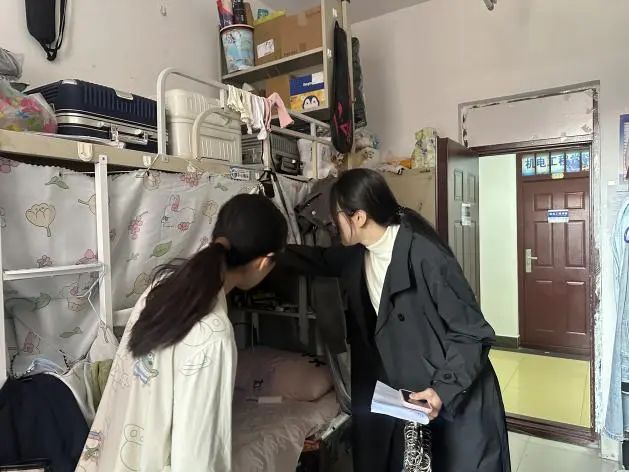 5.保持寝室卫生整洁:检查寝室内的个人卫生及公共区域的清洁状况,包括床铺整理、桌面整洁、垃圾清理等,鼓励学生保持良好的卫生习惯。对卫生环境较差的宿舍提出整改要求,倡导学生养成良好生活习惯,共同维护整洁舒适的居住环境。